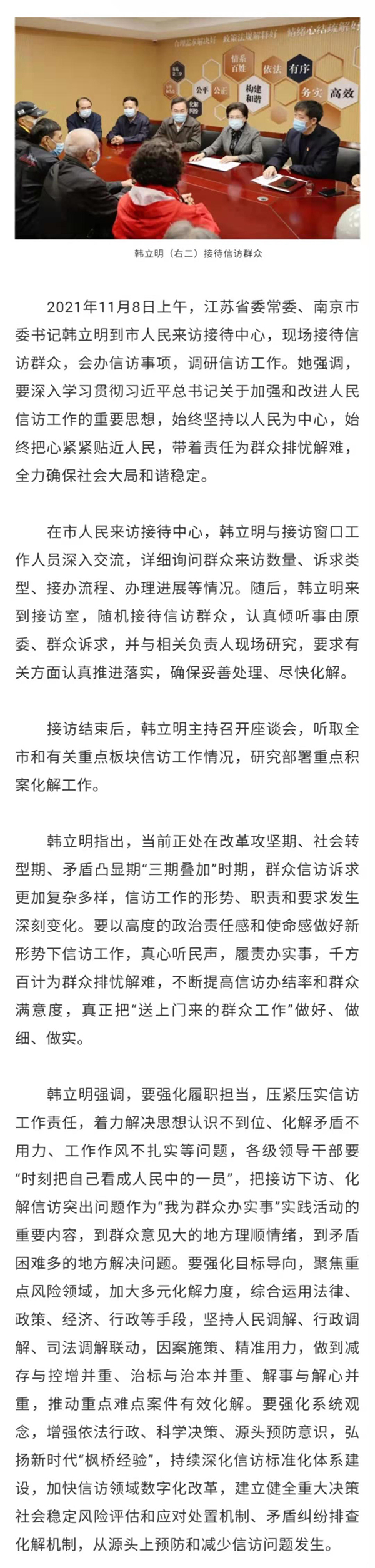省委常委、南京市委书记韩立明接待信访群众调研信访工作