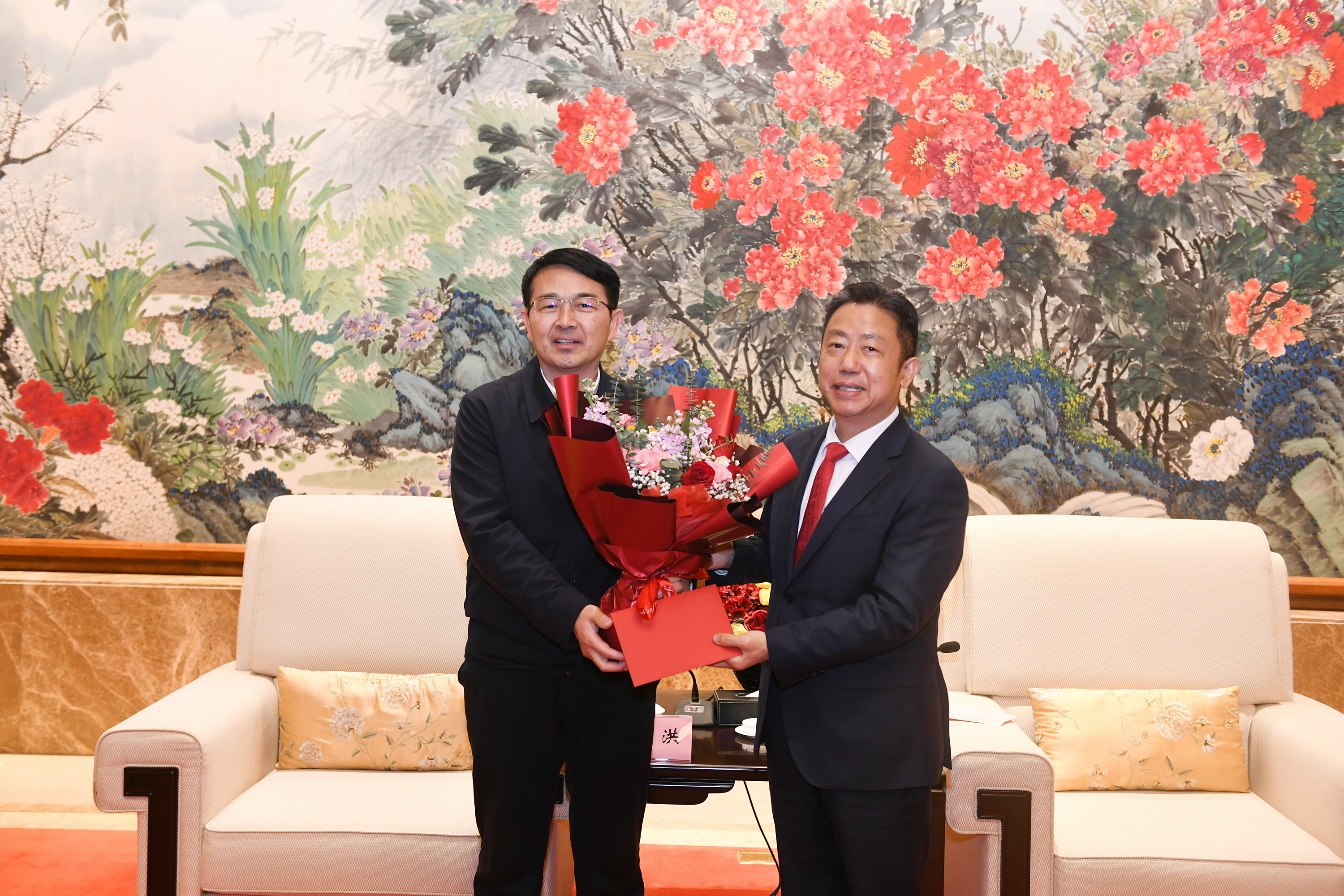 2月4日,省委社会工作部部长、省委“两新”工委书记田洪(左一)走访慰问红豆集团党委书记周海江